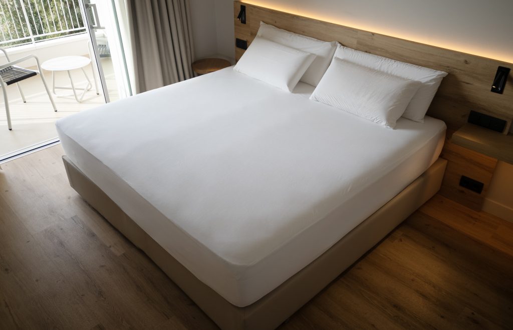 En nuestro caso, confiamos en Hospitality By B-Sensible, que fabrica bajo normativa europea y ha convertido el protector en una verdadera segunda piel para colchón y almohada, prolongando su vida útil y asegurando un descanso higiénico y confortable.